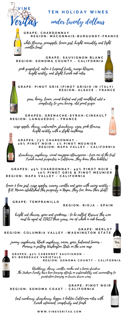 For many of us, budgets are tight this year. Here are ten great wines that you’ll be able to enjoy however you are choosing to celebrate the holidays. These wines are widely available so you won’t have to run around or waste time looking at different shops, and they will likely please all so you’ll be proud to gift, share or drink ’em yourself!